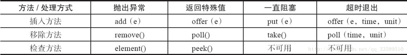 - 当队列空时,从队列里获取元素会抛出NoSuchElementException异常