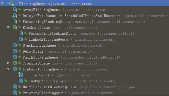 - LinkedTransferQueue:链表结构的TransferQueue,无界阻塞队列