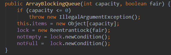 public ArrayBlockingQueue(int capacity, boolean fair) {
