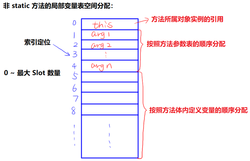 - Java 程序编译为 class 文件时,就确定了每个方法需要分配的局部变量表的最大容量。
