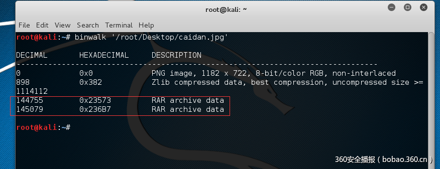 实践证明我的猜想是对的,可以看出,附加了两个rar压缩包。(其实在刚开始的时候,可以直接用binwalk或者winhex等工具查看图片,就能发现包含两个rar压缩包)。根据起始偏移0x236B7,用winhex将最后一个rar提取出来。