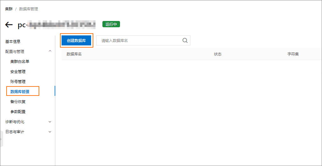 a. 在实例详情页,单击左侧导航栏的 数据库管理 ,然后单击 创建数据库 。