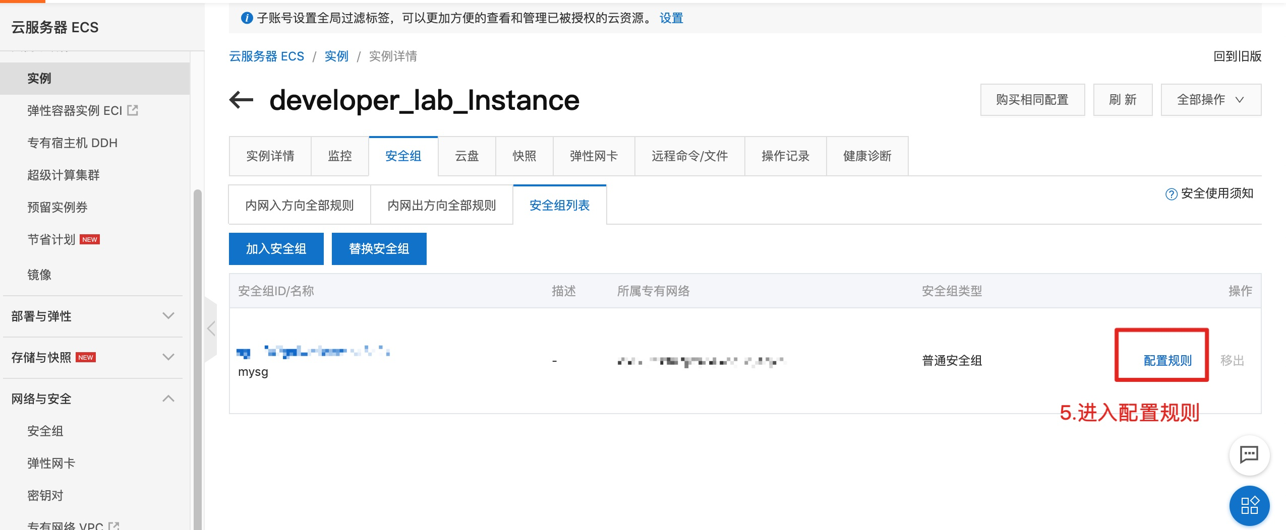 - 在连接服务器之前,首先需要把你自己的ip地址加入安全组中,允许通过入网需求。不然你是无法连接你自己的服务器的。