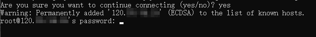 同意继续后将会提示输入登录密码。 密码为已创建的云服务的ECS的登录密码。