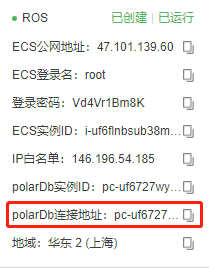 'host' => 'pc-uf6727wyoa963sk18.mysql.polardb.rds.aliyuncs.com', // PolarDB数据库链接地址