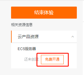 在左侧选择免费开通,等待创建ecs服务器。