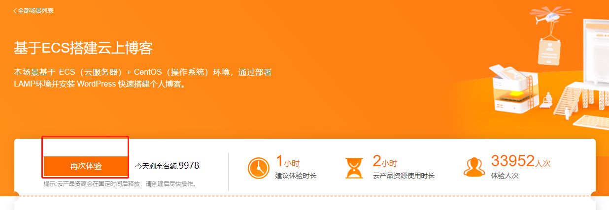 首先我们参加一个阿里云的体验计划,让我们能够拥有一个两小时时长的ecs服务器。