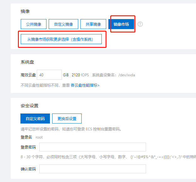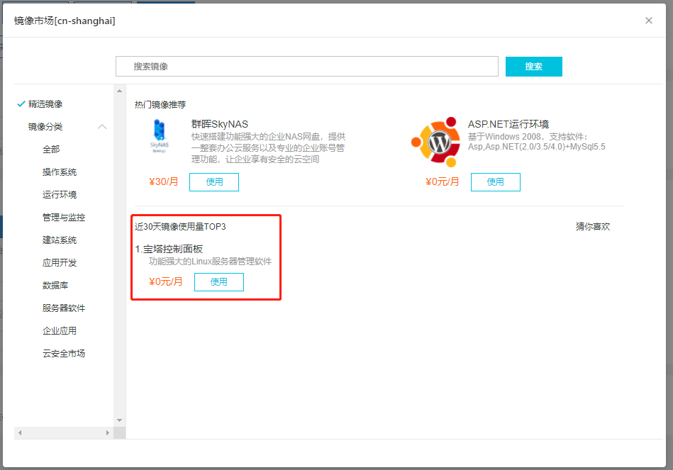 这里我们选择镜像市场,从市场中选择宝塔系统。