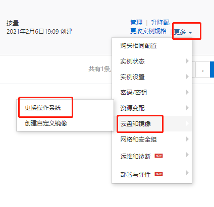 选中实例并且停止实例,更换操作系统,