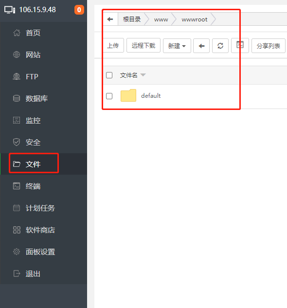 点击左侧文件,进入到根目录。在这个目录上传我们的网页代码。