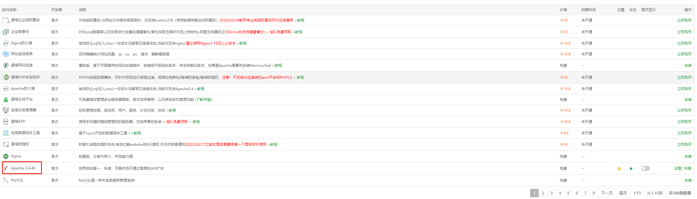 我选择安装apache服务器,安装完成之后点击左侧网站,回到网站页面。