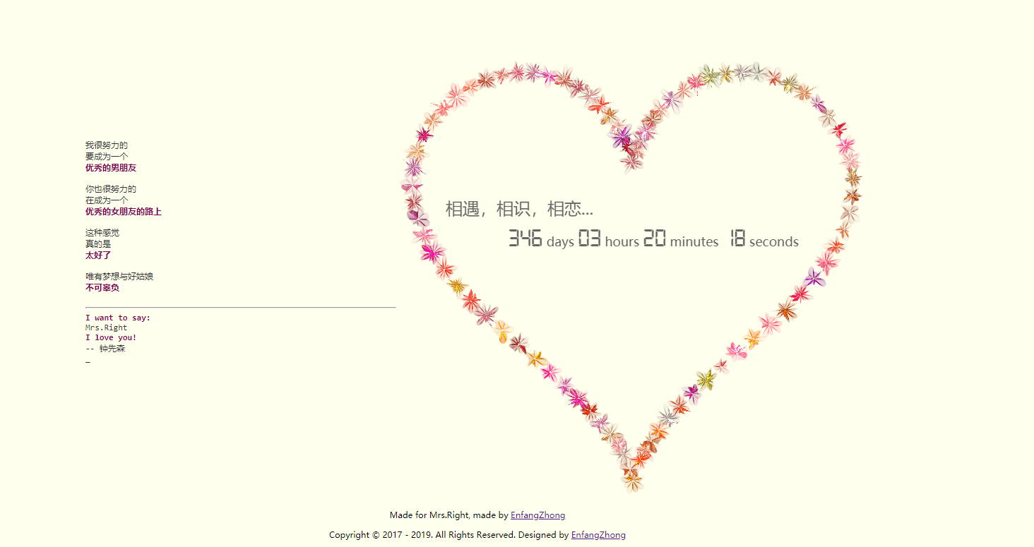 情人节马上就要到了,在这个特殊的日子里,不知道各位程序员们给自己的另一半准备了什么呢?作为一名合格的码农,当然要发挥出自己的长处,去让女朋友开心的同时也会夸赞我们的技术。不需要太复杂,一个合她心意的网站就足够了!
