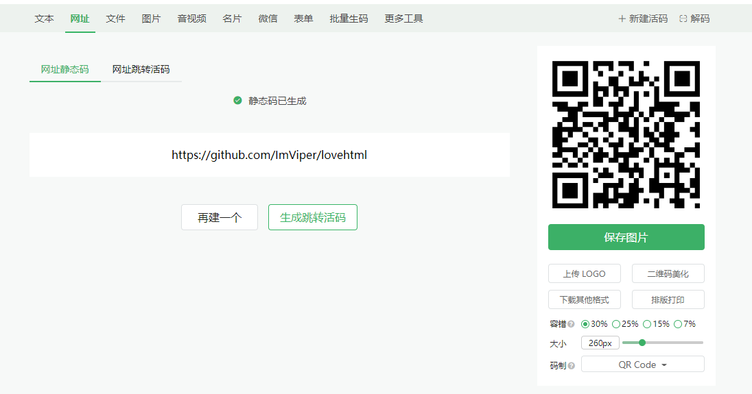 二维码生成地址:https://cli.im/url