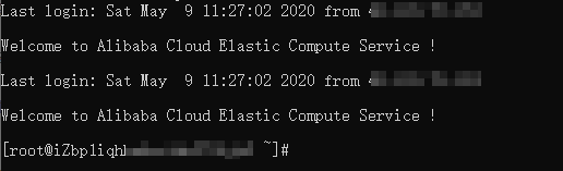 - 在终端中输入连接命令ssh [username]@[ipaddress]。您需要将其中的username和ipaddress替换为第1小节中创建的ECS服务器的登录名和公网地址。例如: