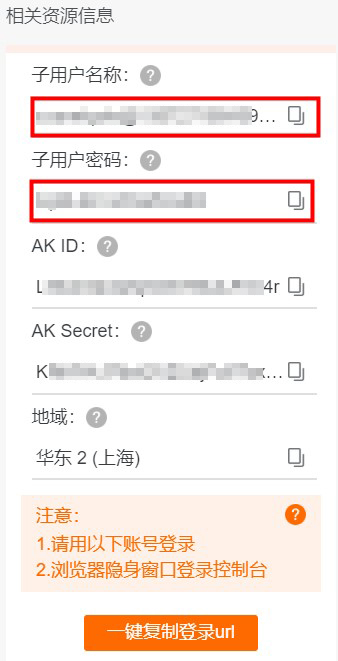 a. 在页面左侧资源栏点击 一键复制登录url,打开浏览器隐身窗口(无痕模式)输入已复制的登录链接。
