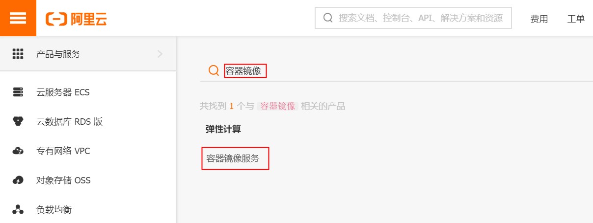 b. 输入资源提供的 子用户名称 和 子用户密码 ,点击 【登录】 ;然后搜索容器镜像,点击【容器镜像服务】登录控制台。