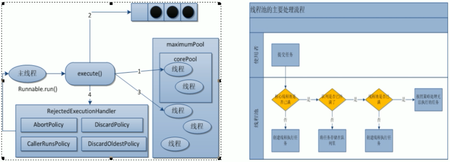 线程池做的主要工作就是控制运行的线程的数量,处理过程中,将任务放入到队列中,然后线程创建后,启动这些任务,如果线程数量超过了最大数量的线程排队等候,等其它线程执行完毕,再从队列中取出任务来执行。
