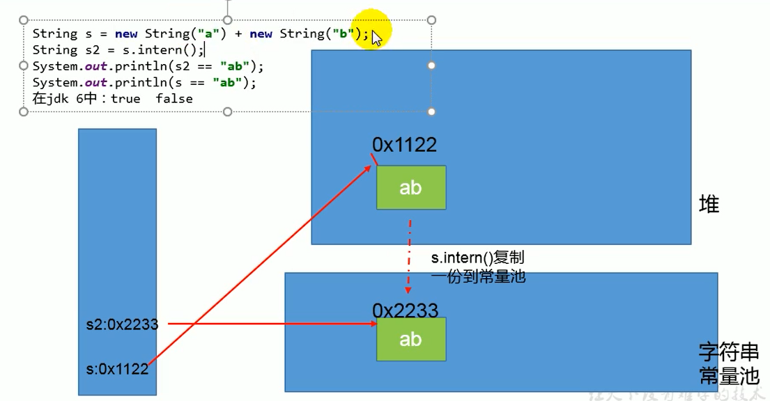 这是因为在JDK6中创建了一个新的对象 “11”,也就是有了新的地址, s2 = 新地址