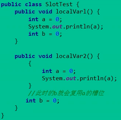 局部变量表中的变量只在当前方法调用中有效。在方法执行时,虚拟机通过使用局部变量表完成参数值到参数变量列表的传递过程。当方法调用结束后,随着方法栈帧的销毁,局部变量表也会随之销毁。