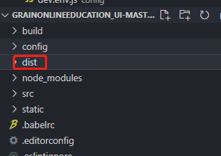 首先使用打包命令打包Vue项目,之后得到一个dist文件夹。这里面存放的是已经打包好的静态资源文件。