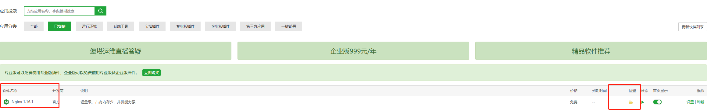 拥有宝塔面板后,安装nginx。