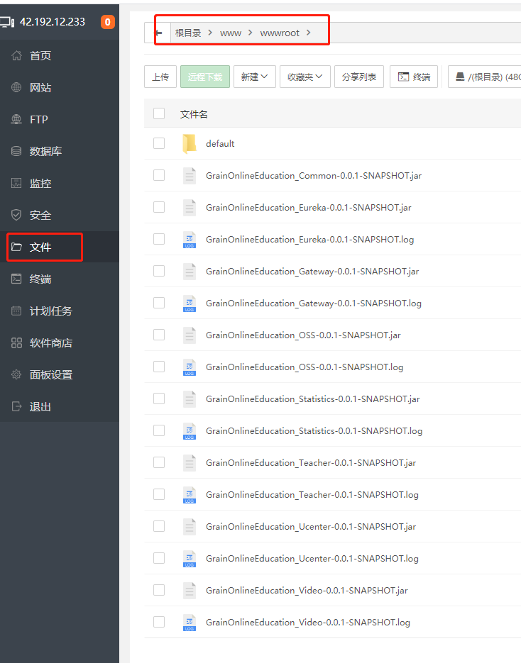 首先把上面打包好的jar上传到服务器的文件夹中。