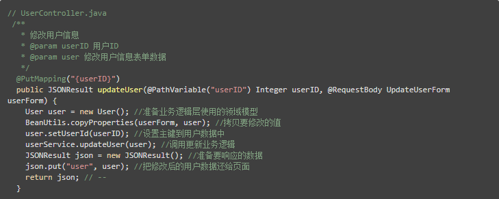 接下来你可以在修改用户的时候想客户端响应这样的JSON