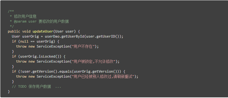 有效性检查,可以交给java的校验框架执行,比如JSR303。假设用户提交的数据经过验证都合法,还是有一些情况是不能调用修改逻辑的。