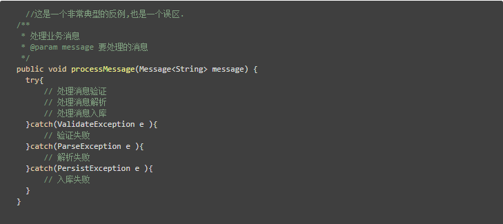 如果不可能一句话描述清楚,并且包含附加信息,比如需要在日志或者数据库记录消息ID,此时可能专门针对这种重要/复杂业务创建独立异常。