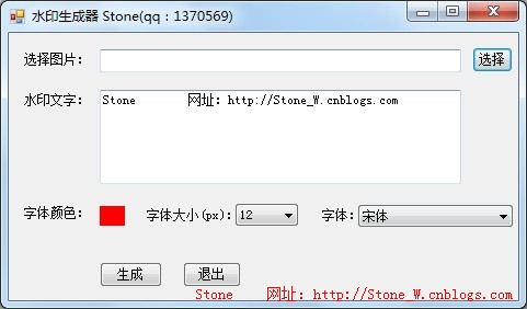 友情提示:不懂开发的朋友,如果想使用此软件,如果你的电脑是WIN 7的话,就没问题,因为WIN 7自定了程序运行的环境,如果你的系统不是WIN 7,在使用次软件之前要下现在运行环境net framework 3.5,下载地址:http://www.microsoft.com/download/en/details.aspx?id=21 下载之后安装就可以使用此水印生成器。