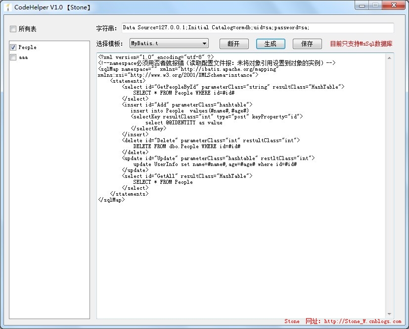 本文标题:iBatis for Net 代码生成器(CodeHelper)附下载地址(已经升级为V 1.1)
