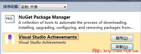 如果是第一次使用 vs 扩展工具的童鞋一定会发现一个问题,如果我不想继续使用一款vs 扩展工具的时候,想要卸载却找不到地儿,比如咱们就以“Visual Studio Achievements”这块提高成就的vs 扩展工具为例,如果安装成功之后就会在每次启动 vs 工具的时候弹出,如图: