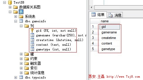拥有以上代码,基本在数据库“反射”查询的时候,能派上用处,也基本够用了,其原理就是利用SqlServer的内置函数,系统存储方法,以系统表(sysobjects、syscolumns)的id为主导线,展开的查询,其中sysobjects的id等于syscolumns表中的id,注意,每修改一次表结构(即数据列)这个id都会发生改变。