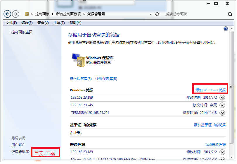打开控制面板-->凭据管理器-->windows凭据->输入IP和用户名、密码TFS就能自动登录了。