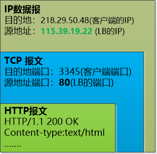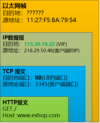 (注: 客户发给LB的数据包, 没有画出数据链路层的帧)
