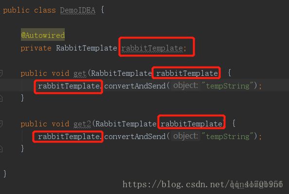 上面的代码中,有5个地方用到了rabbitTemplate文本,如何批量修改呢?