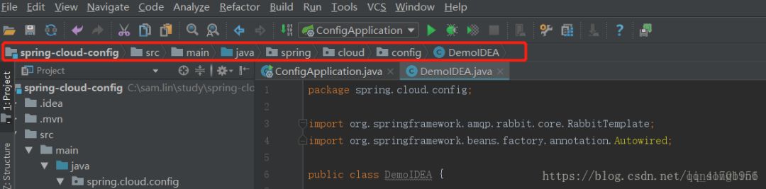 上面图中的DemoIDEA里,你如何知道它是在spring-cloud-config工程里的哪个位置呢?