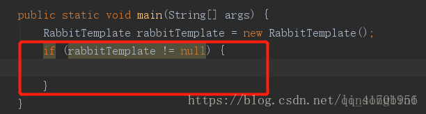 当我们使用rabbitTemplate. 后,直接输入notnull并回车,IDEA就好自动生成if判断了。