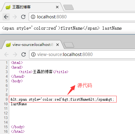 modelAndView.addObject("firstName", "<span style='color:red'>firstName</span>");