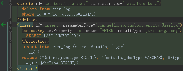点击绿色的箭头直接跳转到了mapper xml对应的方法了,如下图所示: