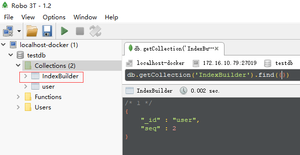 其中collection = "IndexBuilder"是指数据库的集合名称,对应关系型数据库的表名。