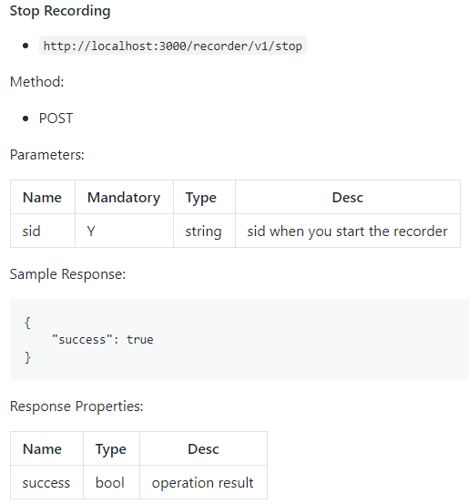 结束录制 ,调用如下: