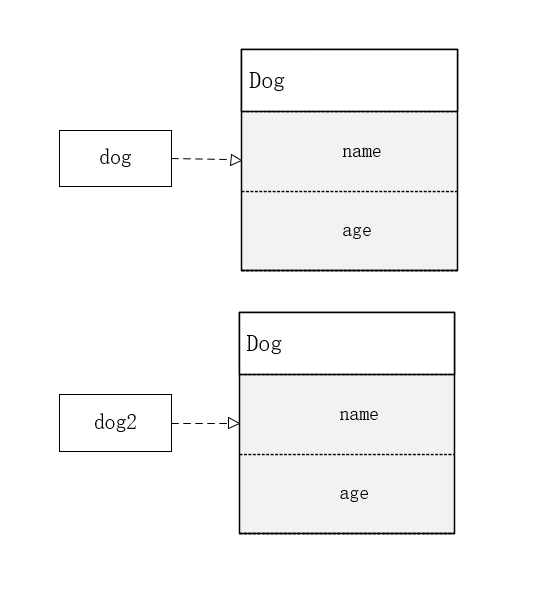 System.out.println(dog2.name + "," + dog2.age + "岁");