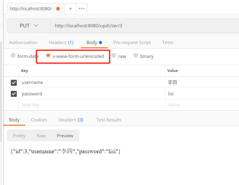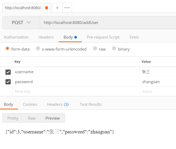 } 测试上述代码,这里我们使用postman测试,非常方便: