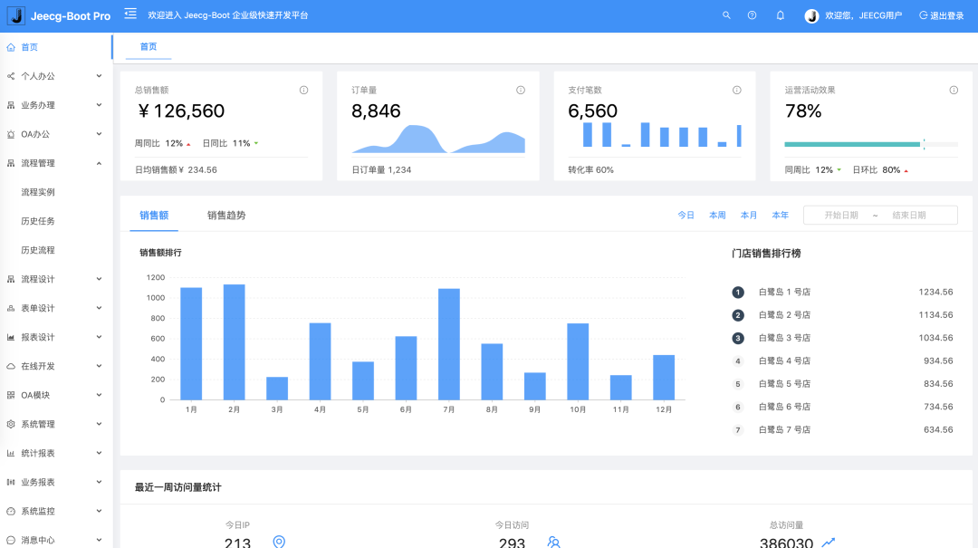这个项目同样在我上大学那会就很火了!简单从下面说几个方面介绍 Jeecg-boot 吧!