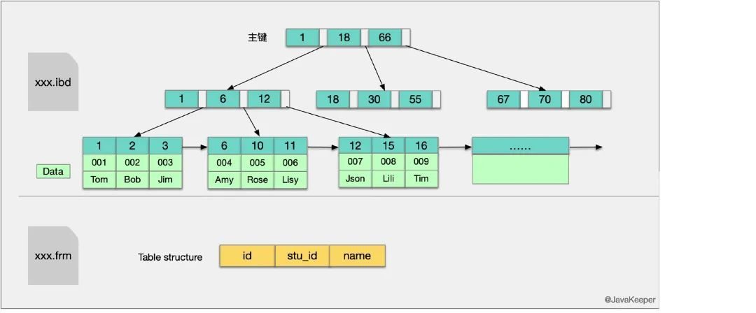 .frm文件:与表相关的元数据信息都存放在frm文件,包括表结构的定义信息等.ibd文件或.ibdata文件:这两种文件都是存放 InnoDB 数据的文件,之所以有两种文件形式存放 InnoDB 的数据,是因为 InnoDB 的数据存储方式能够通过配置来决定是使用共享表空间存放存储数据,还是用独享表空间存放存储数据。独享表空间存储方式使用
