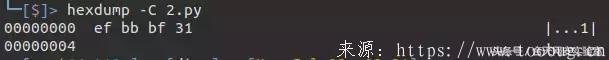 不用使用头部注释即可解析中文字符编码,利用hexdump工具可以看出其中的文件头有三个标志字符ef bb bf