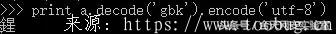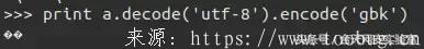 因为终端使用的是gbk编码,所以 啊的编码为'\\xb0\\xa1' 以gbk编码格式进行解析,解析成unicode编码,再使用encode编码方式编码成utf-8。