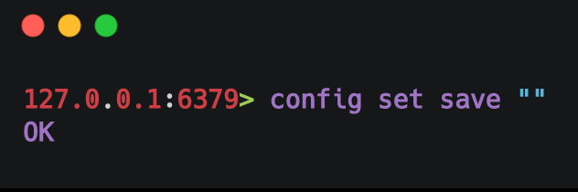 禁用持久化可以提高 Redis 的执行效率,如果对数据丢失不敏感的情况下,可以在连接客户端的情况下,执行 configsetsave"" 命令即可禁用 Redis 的持久化,如下图所示: