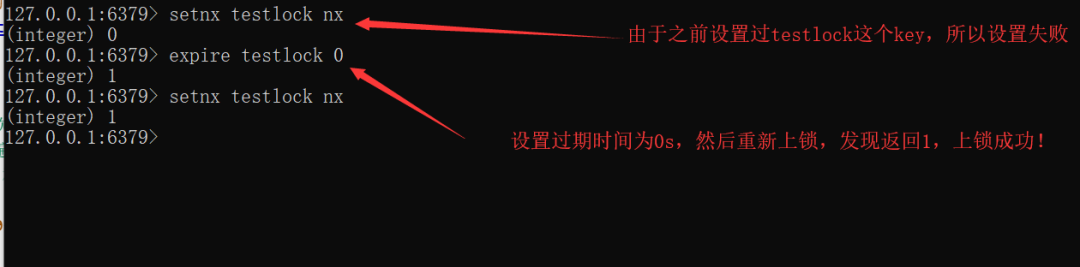 解决:从 Redis 2.6.12 版本开始,我们就可以使用 Set 操作,将 SETNX 和 EXPIRE 融合在一起执行,具体做法如下: